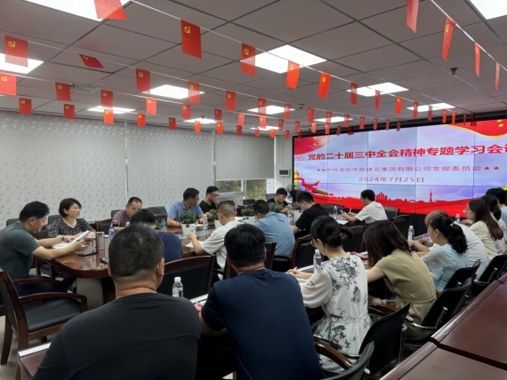 7月25日,市政集團黨支部組織召開黨員大會傳達學習習近平總書記在黨的二十屆三中全會上的重要講話和全會精神,貫徹落實市委、市政府城發集團黨委的工作部署