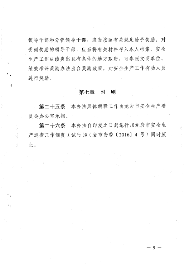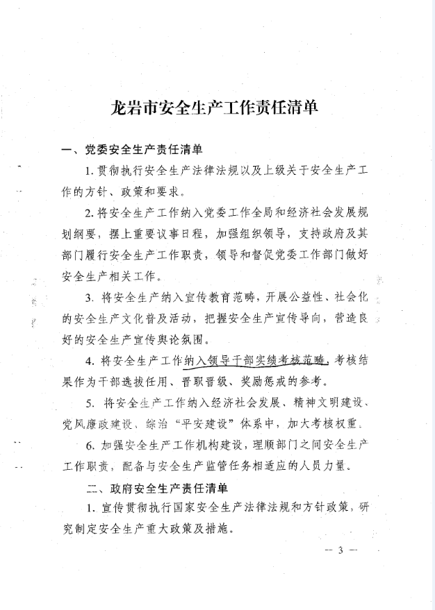 龍巖市安全生產責任清單及安全生產巡查工作辦法(巖委【2017】45)