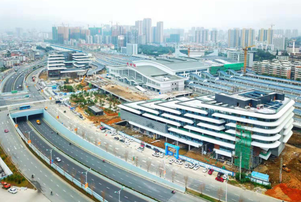 11月20日,龍巖火車站各項目進入完工倒計時。目前,龍巖火車站13條軌道已全部開通,8—13道目前正在開展拉通試驗,預計本月27日左右結束。屆時南龍鐵路全線將進入空載試運行階段。同時,站前高架橋完成樁基、承臺、A和B匝道鋼梁吊裝、主橋站前廣場東側鋼梁吊裝等施工,計劃12月底建成通車。位于廣場兩側的龍巖汽車樞紐、龍巖公交樞紐也計劃于12月完工并投入使用。