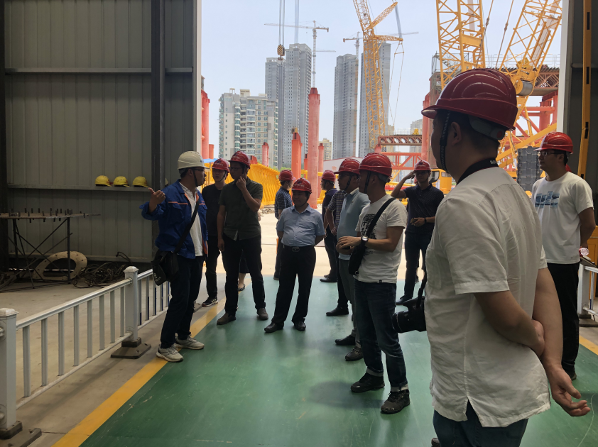 在考察學(xué)習(xí)期間,考察人員首先前往第一站中鐵大橋局七公司楊泗港青菱段斜拉橋工程項(xiàng)目,該項(xiàng)目負(fù)責(zé)人李斌帶領(lǐng)我司考察學(xué)習(xí)人員深入楊泗港大橋主塔施工現(xiàn)場(chǎng),參觀了該項(xiàng)目的主塔工程,項(xiàng)目負(fù)責(zé)人向大家詳細(xì)介紹了該項(xiàng)目的工程建設(shè)情況,該工程臨近鐵路,工程進(jìn)度任務(wù)極重,施工組織及施工技術(shù)要求高、施工難度大,并就相關(guān)問題與大家進(jìn)行了現(xiàn)場(chǎng)交流。
