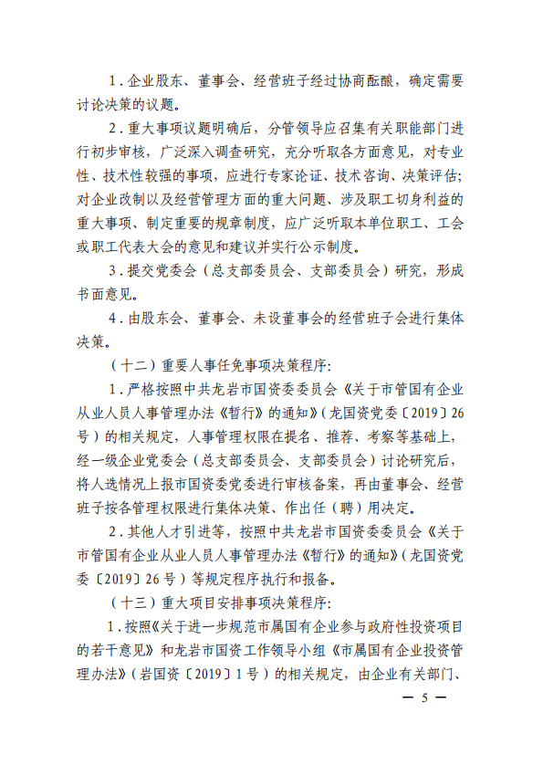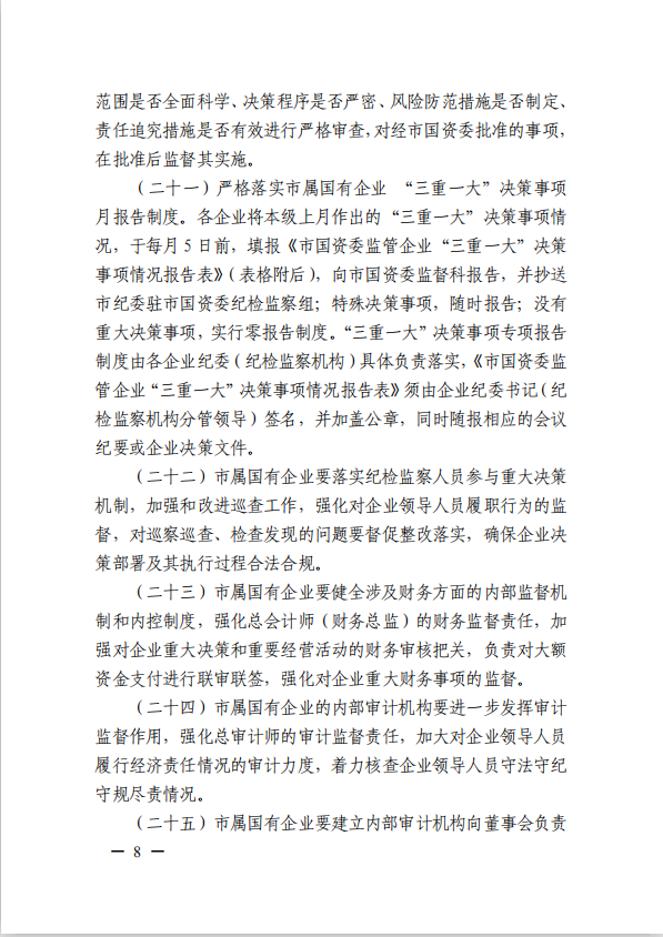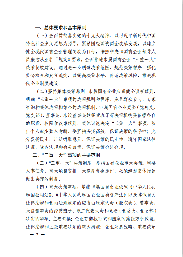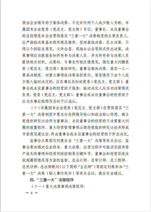 關于進一步規范市屬國有企業貫徹落實“三重一大”決策制度實施意見(國資黨委[2020]21號)