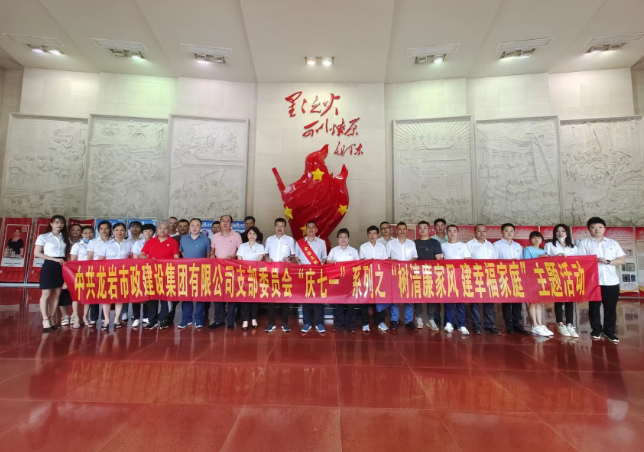 7月7日上午,市政集團黨支部前往廖志添歐月萍全國文明家庭工作室和閩西革命歷史紀念館開展七一”系列活動,公司全體黨員、積極分子和公司中層以上領導干部、部分夫妻職工代表參加。